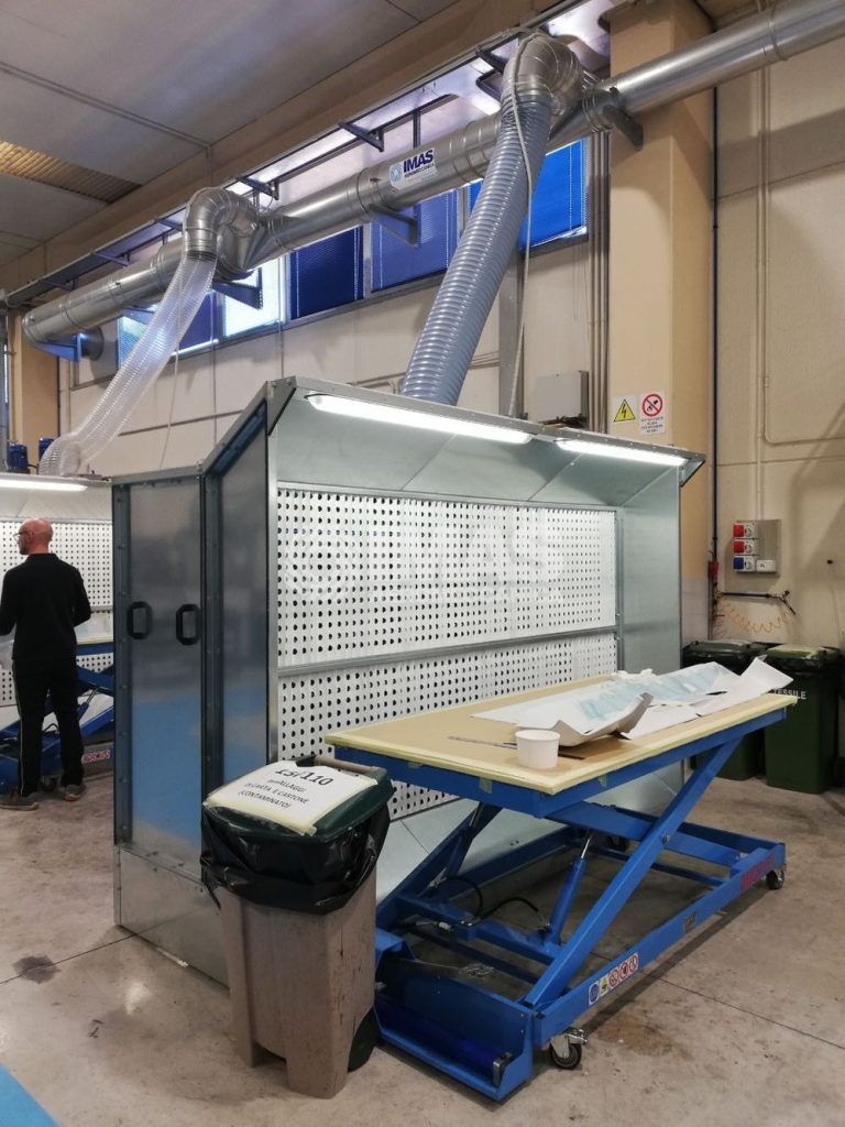 Компания IMAS AEROMECCANICA, внедреющая свою продукцию во многие отрасли от деревообрабатывающей до металлообрабатывающей проомышленности, производства пластмассы и др …, вложила значительные средства в лакокрасочную промышленность при помощи своих сушильных боксов и камер с распылением, фильтров по извлечению пыли от определенной краски , устройств для тепловентиляции и реинтеграции воздуха, нагнетательных камер и систем фильтрации для реинтродукции отработанного воздуха