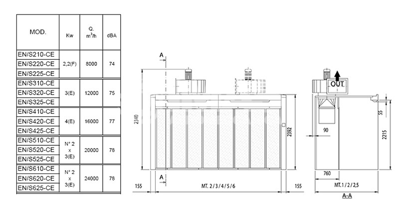 Электровентилятор обеспечивает равномерное всасывание по всей полезной поверхности с общей производительностью 12 000 м3 / ч. Двигатель расположен внутри самой камеры, что снижает уровень шума.